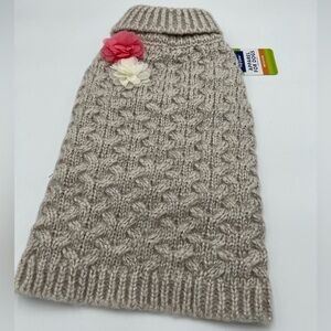 Top Paw Taupe/Silver Cable Knit Dog Sweater with Flowers Medium NWT