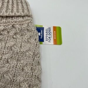 Top Paw Taupe/Silver Cable Knit Dog Sweater with Flowers Medium NWT