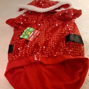 Top Paw (XL) Santa Red Sequined Suit with Fur Trimmed Hood for 24" Dogs. Brand new w/tags. Get your furry friend ready for Christmas. 89% polyester 11% metallic. Lining: 100% polyester. Hand wash cold water.