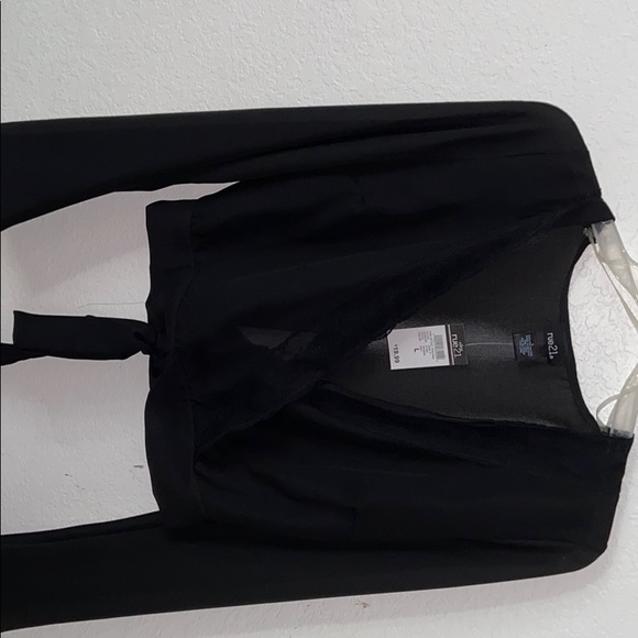 Black Sheer top with a deep v neck with lace in a size L but fits like a medium