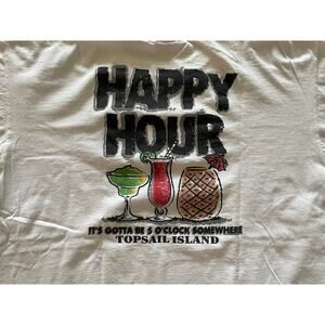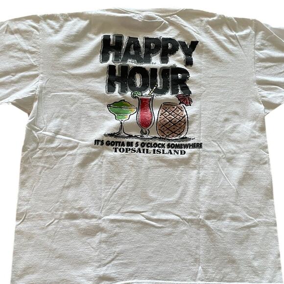 Get ready for happy hour with this awesome Top Sail Island T-Shirt! This white Anvil brand shirt is in excellent condition and features a fun design perfect for vacation vibes.