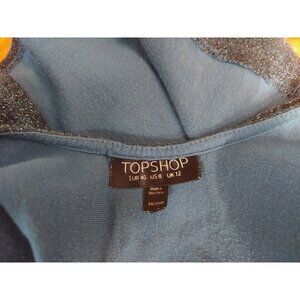 Top Shop Blue Sparkle Crop Top Womens Sz M Scoop Back Stretch P