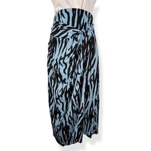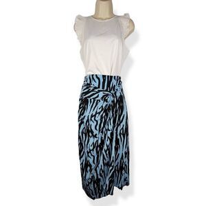 Top Shop Blue Zebra Print Faux Wrap Skirt Size 10