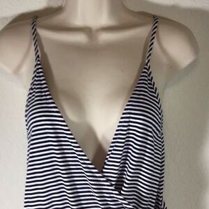 Top Shop Body Suit Black White Stripe Spaghetti Straps Blouson Top Size 4 Tall