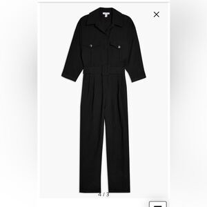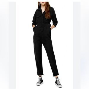 Top Shop Denim Belted Button Up Black Long Sleeve Utility Suit | Size 4