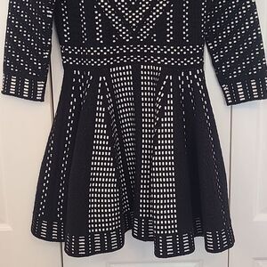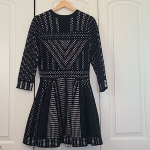 Top Shop Geometric Pattern Fit And Flare Knitted Mini Dress Black White Size US8