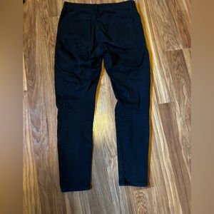 Stretchy material, rips in the knees, high waisted, very comfy!