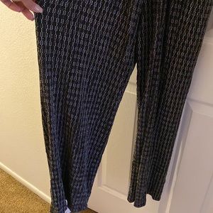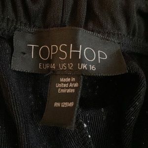 Beautiful Top Shop jumpsuit in black, white, and silver sequence. Wide leg. Worn once. No pulls or tears. Cross back detail. Elastic waist. Inseam 26 inches. I am 5’9” and it goes down to my ankles.
