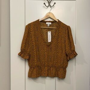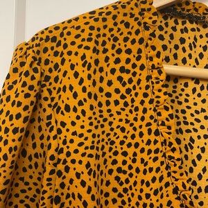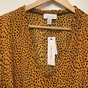 Top Shop Leopard Crop Ruffle Top