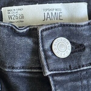 Top Shop MOTO JAMIE Faded Black W/ Floral Embroidery Ankle High Waist Stretch