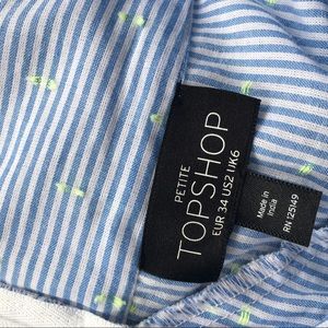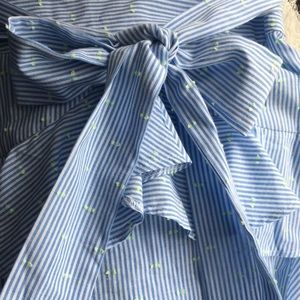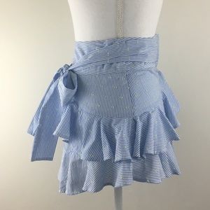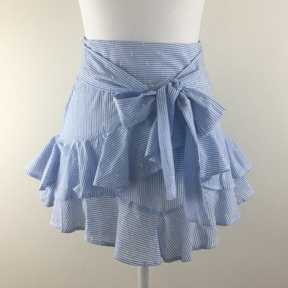 Ruffled pin striped light blue skirt. Has small details in lime green. Wrapped Bow. Mini skirt in US 2. New without tags! This skirt fits so beautifully on.