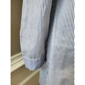 Top Shop Women Blue Striped Cotton & Polyester Trendy Style Button Shirt Size 2.