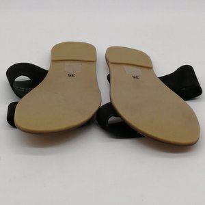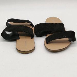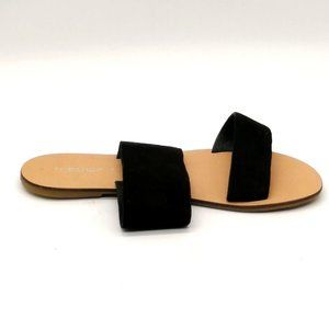 Top Shop Womens Sandal Black Suede Slide Two Front Straps Flat Heel EUR 35 Wide
