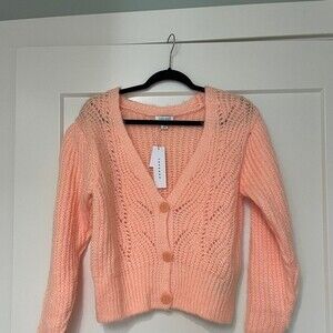 Top Shop knitted pointelle Cardigan in peach-orange NWT