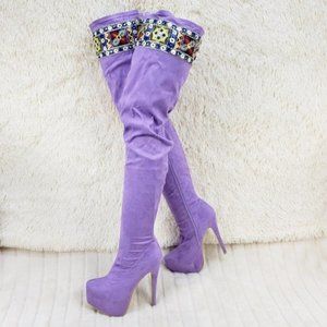 Top Show Lilac Purple Platform 6.5" High Heel Thigh Crotch Boots Size 5.5