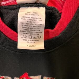 Step into cozy comfort with this charming vintage Top Stitch sweatshirt! The black crew neck, adorned with a layered red collar, frames a beautifully embroidered red cardinal bird. This unique piece is in excellent condition, free from any holes or stains.