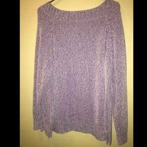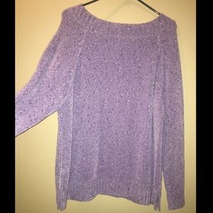 Lavender color. Velour type sweater, soft to touch. Very comfortable to wear. Long sleeve. Scoop neck. Gently worn and in great condition.