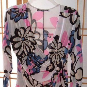 Top Sz M Pink Polka Dot by Shari Seneil Floral Boho slinky stretch blouse