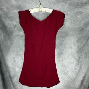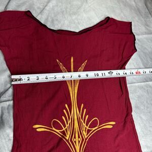 Top Tunic Women Sm/Med Form Fitting Stretchy Artsy Brick Red Gold Design Boho