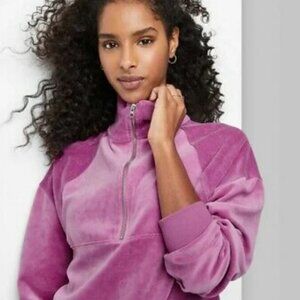 Top. Wedge Zip-Up Hooded Sweatshirt - Wild Fable Mauve XXL: Fleece