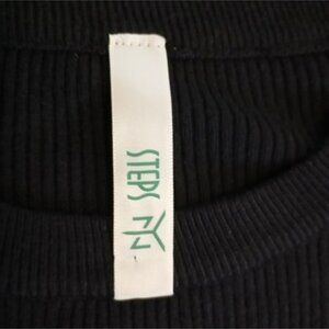 Top With Rhinestone Fringe Hem Black Ribbed Long-Sleeve Womens