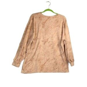 Top Women's 1X Stone Wash Pink Tan Gathered Long Sleeve Sweatshirt Lightweight