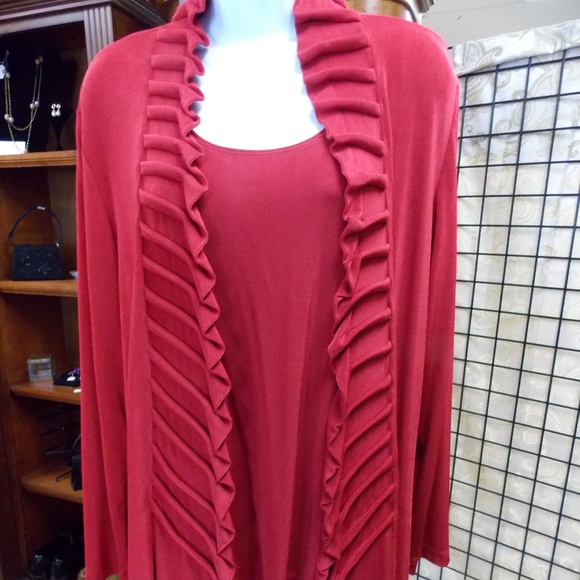 Top jacket and shell. Stretch knit. Chicos. Drapes beautifully. Preowned. Excellent condition.