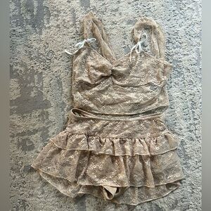 Top and tank in lace with bonus khaki skirt! Large but short!