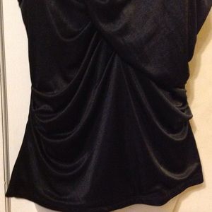 Black and chic fits snug to the body since made of 100 % polyester it stretchy