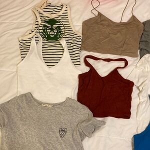 Bundle of 8 crop tops. Three are t shirts, five are tanks, as shown in pictures. Brands are SHEIN, hollister, double agent, bozzolo, fashion nova, and wild fable. One has Colorado State University logo. All size small or x small. Selling for my daughter.