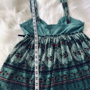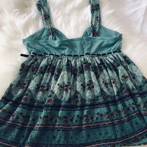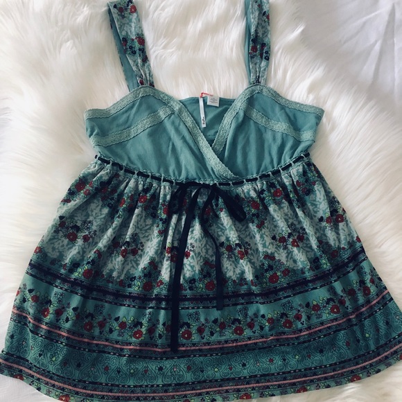 Ric Rac top from Anthropologie. Sage green print. Empire style with ribbon just under bust.
