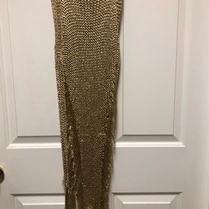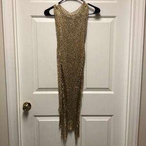Gold mesh distressed shirt dress