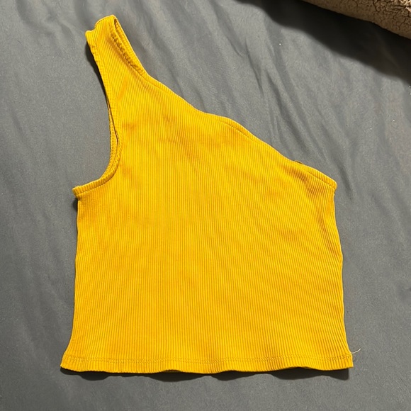 Worn once, great condition, no flaws. Mustard colored cropped 1 shoulder top. Stretches