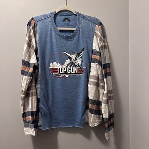 Top gun shirt flannel sides up cycle handmade one of a kind