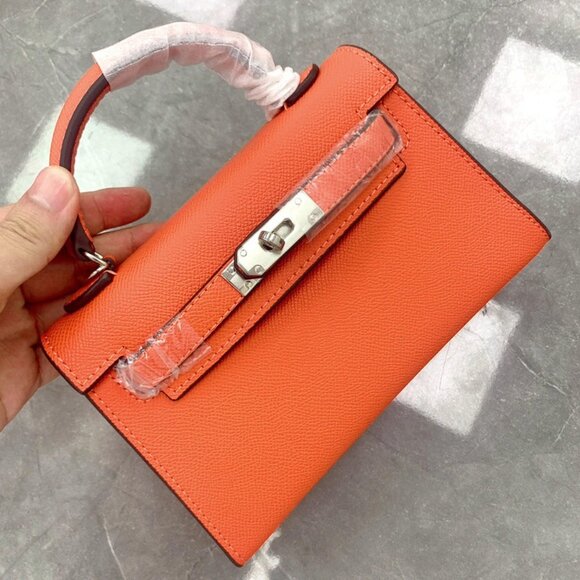 Stylish orange leather clutch perfect for any occasion. Features a sleek design with a secure clasp.