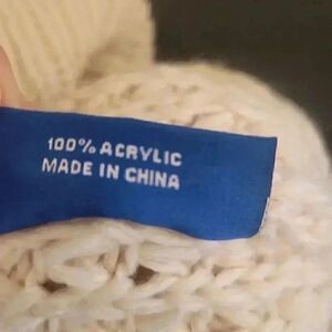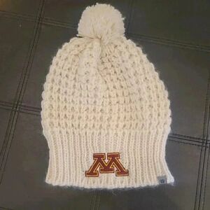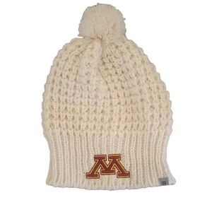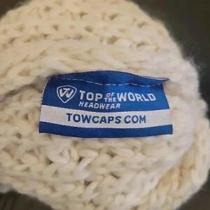 Top of the World Women's Cream Acrylic Knit Beanie w Pom-Pom and Logo Patch EUC sz OS