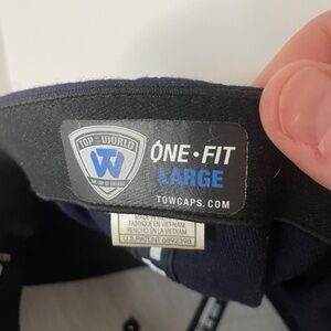 For sale is a lightly worn Top of the World stretch fit Notre Dame Fighting Irish 2013 BCS Championship navy blue cap, size Large. The cap has been well kept and is free of blemishes or tears. Personally I wear a 7 1/2 fitted and this hat fits me very comfortably.