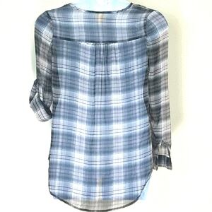 Top plaid lightweight 3/4 roll up short sleeve pull over Med