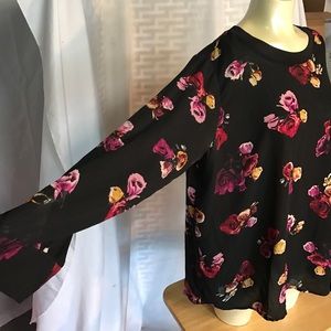 Black floral print pullover long sleeve top