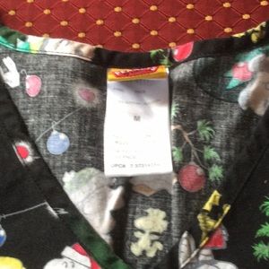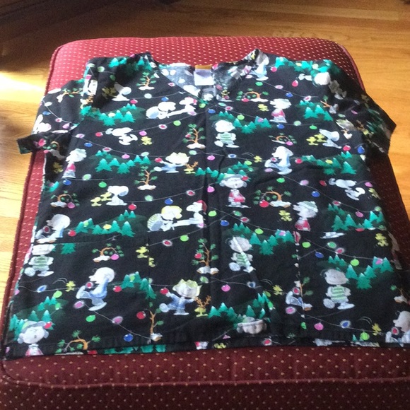 Peanuts characters Christmas scrub top. Size m. 100 percent cotton. Excellent condition. Pockets. Splits on side at hem.