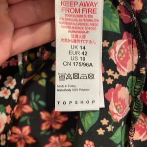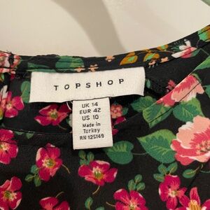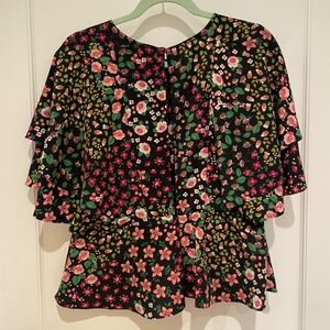 Polyester floral top with fun sleeves and a sort of slit in the back
