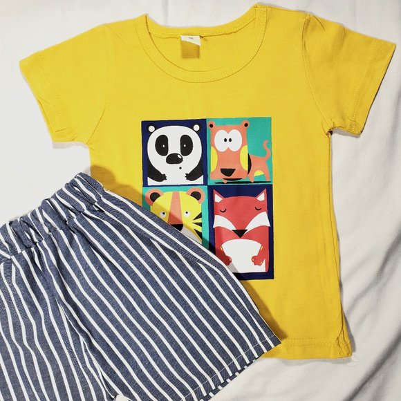 Yellow shirt with striped shorts