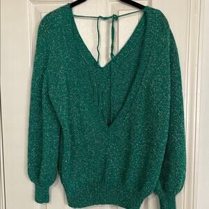 Top VNeck green emerald V-neck sweater handknit with a lurex gold knit with yarn . Ideal for versatile styling. Wear over leggings or with long skirt. New without tags.