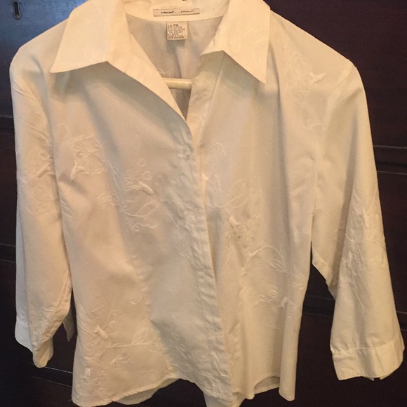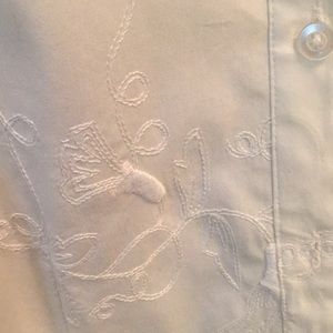 3/4 sleeve, over embroidered. Measures 20” under arm to underarm across front. Back 22” neck to hem.