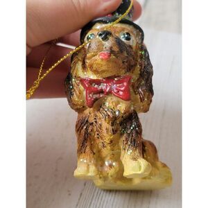Top Hat dog glitter mistletoe ornament Xmas decor