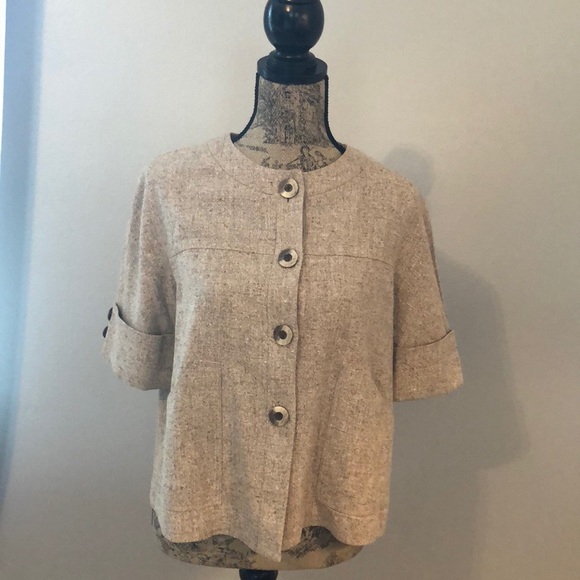Linen & silk blend top/jacket. Can be worn open or buttoned up. Loose fit.