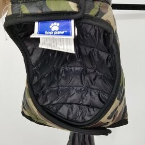 Top Paw Reversible Camo Dog Vest Small. Camo on one side solid black on the other side. Velcro strap closure. Bonus Storage Bag.