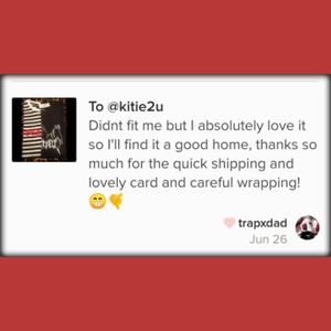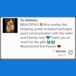 π Thank U for taking a moment to tap & read some feedback left by some of my guest(s) that shop here at: The Kitie2u Closet/Boutique. I pride myself as the owner of this Online Store in providing the best Poshmark Shopping experience. For an amazing Customer Service experience this is the Online Store where U are treated as family & may shop with confidence. Air Hugs & Kisses in Ur direction! WiNk! π π