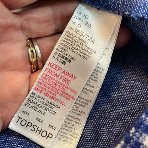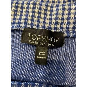 TopShop 6 gingham print blue white mini shirt w/slanted ruffle
