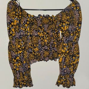 TopShop Beautiful Ruffle 🌼 Blouse (2)(XS)(NWOT) Pretty colors orange , pink & black . Ruffle with puff sleeves . New without tags . Size XS can fit S. Same or next day discounted shipping !
